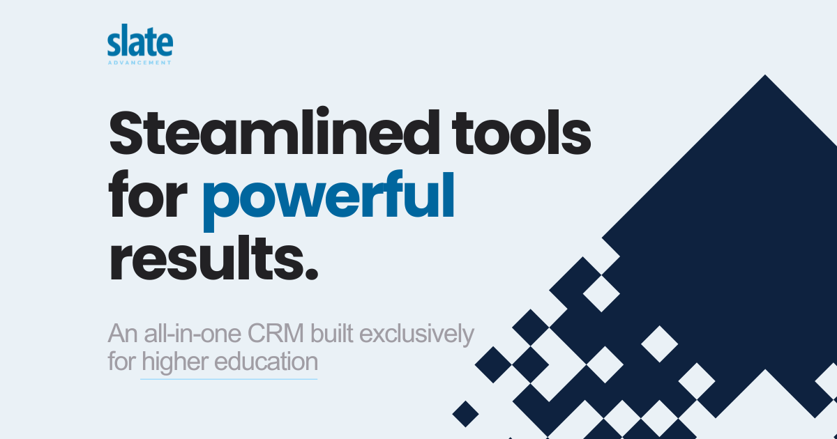 ![]() Supercharge Your Advancement StrategySlate for Advancement is your all-in-one powerhouse for donor management, digital engagement, gift processing, and AI-driven insights. Eliminate silos. Unify systems. Accelerate results. Schedule a call to talk with one of our experts about transforming the way you work. Scroll down to learn more about how Slate powers the full spectrum of higher ed advancement. Schedule Your Initial CallPick a day and time that works for you — no back-and-forth required. You'll get a calendar invite automatically with the call details, where we can discuss your needs for a more in-depth product demonstration. ![]() ![]() ![]() ![]() ![]() ![]() ![]() ![]() ![]() ![]() ![]() ![]() ![]() ![]() ![]() ![]() ![]() ![]() ![]() ![]() ![]() ![]() ![]() ![]() ![]() ![]() ![]() ![]() Trusted by 125+ higher ed institutions. Engineered for Performance and PossibilityBuilt from the ground up for higher education, Slate delivers seamless experiences to donors and staff alike. Unified CRMFrom records to reports, Slate houses every aspect of your advancement ecosystem in one sleek platform. AI-Powered InsightSmart summaries, donor suggestions, predictive gifts, and automated outreach help your team focus on what matters most. Campaign IntelligenceTrack every dollar, pledge, fund, and campaign goal with stunning dashboards and real-time updates. Donor PortalsLet donors view giving history, pay down pledges, update profiles, and submit scholarship stewardship letters with ease. Modern Giving FormsDesign forms that drive conversion—mobile-optimized, branded, and intelligent by default. Event IntegrationRun events with custom sub-event logic, check-in tools, automated follow-up, and dynamic badges. Accelerate Your MissionEmpower your staff. Delight your donors. Take your advancement strategy to new heights—with Slate. Schedule a DemoBeautiful. Powerful. Intuitive.Every screen in Slate is built to feel as good as it functions—whether you’re planning campaigns or viewing lifetime donor journeys. ![]() Comprehensive Tools for Every MomentSlate powers the full spectrum of advancement—from first contact to final gift acknowledgment—with elegance and precision. Giving DaysLaunch dynamic, branded campaigns with real-time goals, challenges, leaderboards, and integrated offline gift tracking. Contact Reports & CadencesLog interactions, trigger workflows, and follow a cadence of outreach designed to strengthen relationships. SMS & Video MessagingSend personalized texts and record in-browser videos to thank, invite, or engage constituents at scale. Virtual AgentsDeploy AI-powered assistants to handle donor inquiries, freeing staff to focus on stewardship and strategy. Print & MailDesign, merge, and mail solicitations, acknowledgments, and postcards—automatically printed and sent via USPS. Badging & Check-inCreate personalized badges with QR codes and print them on-site. Check attendees in with mobile or geolocation tools. Homecomings & ReunionsManage multi-day events with nested sub-events, meals, lodging options, and dynamic registration flows. In-Person PaymentsAccept gifts during events or calls via card swipers and secure forms—fully PCI compliant. Phonathons & Engagement CentersEquip callers with tailored scripts, real-time data, and pledge fulfillment tools built directly into the platform. Power of Slate AIEmpower your staff. Delight your donors. Take your advancement strategy to new heights—with Slate. Ask Questions of Your DataWhat are my top prospects for this quarter? Who hasn’t been contacted in 90 days? Just ask. Slate AI understands your language and returns answers in real-time. AI-Generated PortfoliosLet Slate AI build and maintain prospect portfolios based on giving capacity, engagement, and custom criteria—automatically and continuously. Write and Design with EaseDraft personalized emails, newsletters, and website content that wow—without starting from scratch. Slate AI generates content and designs that reflect your brand. AI ChatbotsAnswer questions, route inquiries, and provide immediate assistance to constituents 24/7. Slate’s AI Chatbots deliver friendly, accurate responses based on your institutional knowledge sources — no staff time required. AI AgentsEngage, solicit, and steward prospects at scale. AI Virtual Agents initiate personalized outreach, identify giving signals, and seamlessly hand off high-potential conversations to human fundraisers—supercharging your team’s efficiency and reach. All-Inclusive, Transparent PricingWith Slate, you get every feature—no modules, no surprises. One simple license includes: Unlimited UsersGive access to your entire team, without per-seat charges. Unlimited DataStore unlimited constituent records, gift histories, and event logs. Unlimited Gifts & DocumentsTrack hard and soft credits, pledges, planned gifts, and upload any related files. Unlimited Queries & ReportsBuild as many insights and dashboards as you need—at no extra cost. Unlimited Artificial IntelligenceUnlimited use of Slate AI for your bots, agents, and assistance throughout Slate. All Features IncludedGiving forms, events, AI, Deliver, portals, texting, printing, dashboards—all part of your annual license. What Our Clients Say“The main winning aspect was that all touch points of the donor’s record would be managed, maintained, and updated in one location. We would not be reliant on a third-party vendor for main aspects like e-mail or texting or calling or payment processing. Slate for Advancement has an approach to technology that is embracing of our modern world of technology that I have not seen in other vendors.” — Lloyd Lentz, Executive Director of User Experience and CRM, Macalester College Ready to Elevate Your Advancement Strategy?Join over 125 institutions who trust Slate to power their philanthropic success. |